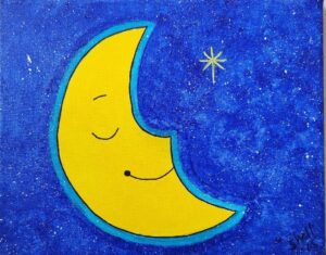 Just a little “starry eyes and moon magic.” Choose between 1 of 2 acrylic paintings on an 8″ x 10″ canvas. The kid version uses cotton balls, Q-tips, and a marker, while the adult version uses paint brushes. Get totally “moonstruck” and learn the phases of the moon. Stay on a “high tide” while creativity “lights” your path. See you there.